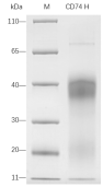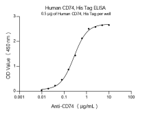 Active Recombinant Human CD74 Protein was determined by SDS-PAGE with Coomassie Blue, showing a band at 35-40 kDa. | Immobilized Human CD74, His Tag at 5 μg/mL (100 μL/well) can bind Anti-CD74 with a linear range of 0.02-0.15 μg/mL. | |