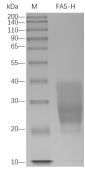 Recombinant Human FAS Protein was determined by SDS-PAGE with Coomassie Blue, showing a band at 20-40 kDa. | |
